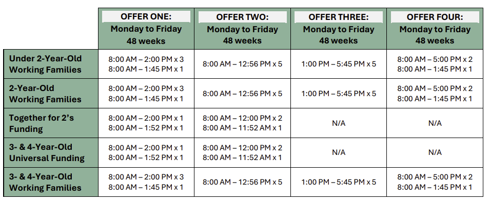 My Funded Offer is below and will explain arrangements for the delivery and funding for the following entitlements: